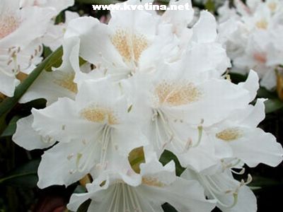 Rhododendron catawbiense "Grandiflorum" - Rododendron, pěnišník. Patří ke známým a oblíbeným druhům. Má vzpřímené trsy květů sytě levandulové barvy s červeným tečkováním. Roste poměrně rychle a dokáže přerůst 2m. Toleruje plné sluce a vítr.