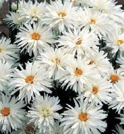 Leucanthemum vulgare "Crasy Daisy" (Chrysanthemum) - Květy velké tvořené bílými jazykovitými květy a uprostřed žlutými trubkovitými, které skládají terč. Velmi pěkná ve skupinové výsadbě. Vhodná k řezu a do velkých nádob. Výška 45cm. Kvete květen - srpen.