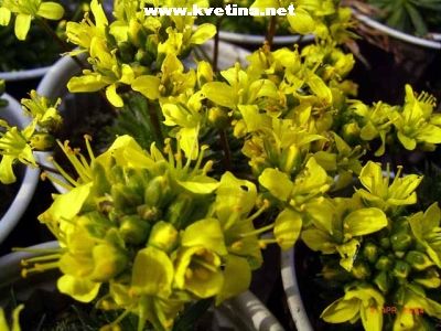 Skalnička velká asi 8cm,Vzrůst růžicovitý, pevně polštářovitý, hustý.Květy drobné 7mm velké, zlatožluté.Potřebuje propustné, písčito-štěrkové, zdušné teplé půdy. Kvete březen - duben.