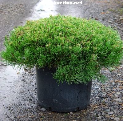 Pinus mugo var. pumilio - Borovice horská - kleč kosodřevina. Vzpřímený keř ploše kulovitého až polštářovitého tvaru. Větve hustě postavené s vystoupavými větévkami. Výška 1-1,5m, šířka 2m. Jehlice rozdílně dlouhé, temně zelené. Přispůsobí se každým sušším a chudším podmínkám. Výborná mrazuvzdornost.