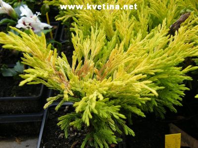 Jalovec polehlý - Juniperus horizontalis "Lime Glow". Kompaktně rozložitě rostoucí jehličnan žlutého zabarvení. Vyžaduje mírně kyselé humózní půdy, propustné. Slunné stanoviště. Vhodné použití je do skalek, skupinových výsadeb, nádob. Výška 30 - 50cm.