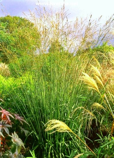 Bezkolenec - Molinia arundinacea (altissima) "Karl Foerster". Středně vysoká trsovitě rostoucí travina. Dlouhá pevná stébla v úzkém vějíři, na podzim zbarvuje do oranžova. Květenství jemné, které je možno sušit. Pro skupinové výsadby nebo jako solitera. Výška 120 - 180 cm. Kvete srpen - říjen.