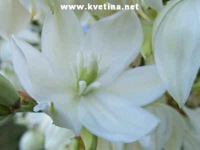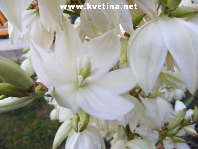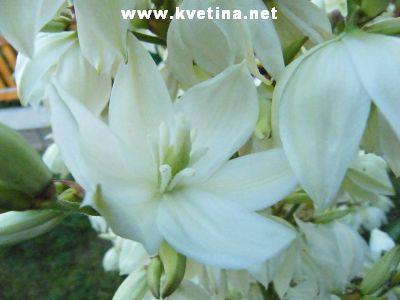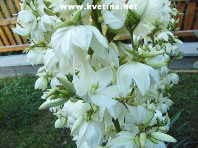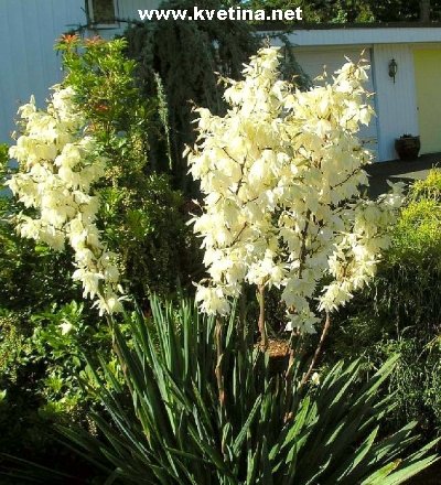 Juka - Yucca filamentosa. Vyšší trvalka pro slunná místa. Stanoviště písčité a suché. Listy tuhé, mečovité. Tvoří přízemní růžici ze které vyrůstá vysoký stvol s bohatou latou převislých, květů. Využívá se hlavě jako solitera. Výška 100cm. Kvete červenec.