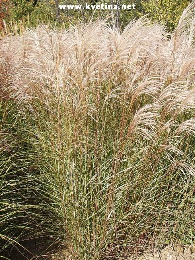 Ozdobnice čínská - Miscanthus sinensis "Graziella". Vysoká, trsovitě rostoucí tráva. Listy úzké zelené. Výška 100 - 160 cm. Květenství bohaté narůžovělé. Kvete v srpnu. Plně mrazuvzdorná. Nenáročná a dekorativní trvalka. Seřezáváme až na jaře, jinak hrozí vyhnívání rostliny.