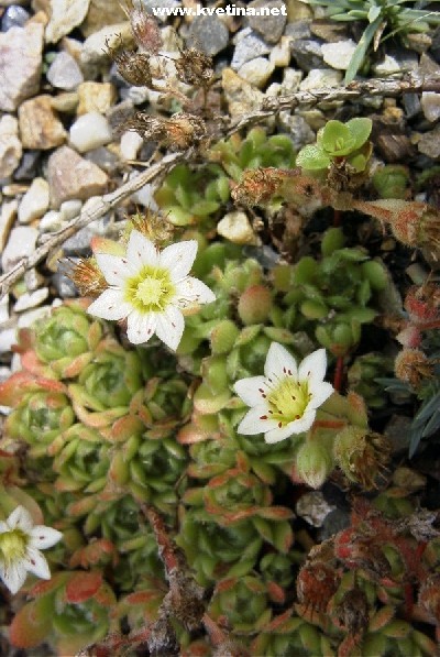Rosularia sedoides "Alba" /Sempervivella alba/. Skalnička nízkého vzrůstu pro slunné a suché stanoviště. Půda písčitá, propustná, bez zimních a jarních záplav. Tvoří rozety, které na přímém slunci se barvý do červena. Používá se ve skalkách, korytech, zídek i do nádob. Velmi nenáročná. Výška 5cm. Kvete červen - srpen.
