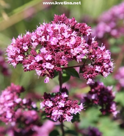 Dobromysl, Oregáno - Origanum vulgare "Compactum". Středně vysoká trvalka se silně aromatickými listy. Stanoviště slunné, propustné, a písčité půdy. Bohaté květenství v latách. Husté kopečky. Tmavší zelený list. Používají se do záhonů, koryt, na obruby. Výška 15 - 20cm. Kvete červenec - září.