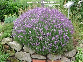 Levandule - Lavandula angustifolia "Dwarf Blue": Venkovní trvalka,odpuzuje škůdce,uklidňující účinky, Vhodná do nádob, lemování cest, záhony růží. Půda dobře propustná, písčitá půda obsahující vápno. Výška 30cm.Kvete červenec - srpen. Květy se suší ve svazcích a používají se do suchých kytic, věnečků, voniček a ve směsích potpourri. Sušené květy se dávají do pytlíků k provonění prádelníku a k ochraně před moly. Dále se využívají při výrobě pleťových vod pro jemnou a citlivou pokožku k regeneraci buněk a jako antiseptikum proti akné. Přidávají se do mýdel. Užívají se v masážních olejích při bolestech svalů a při retenci tekutin. Nálev z květů se pije jako čaj ke zmírnění bolestí hlavy, k uklidnění nervů, zmírnění nadýmání, při závratích a mdlobách. Jemné silice se používají jako antiseptikum, mírné sedativum a prostředek proti bolestem, zejména při štípnutí hmyzem. Užívá se i jako masážní olej při aromaterapii při krčních infekcích, zánětech, revmatických bolestech, nespavosti a depresi.