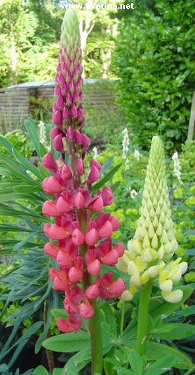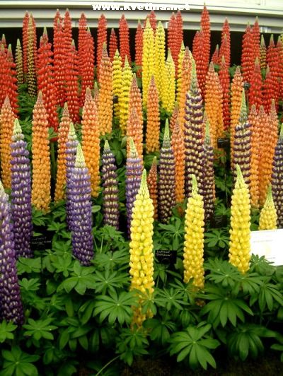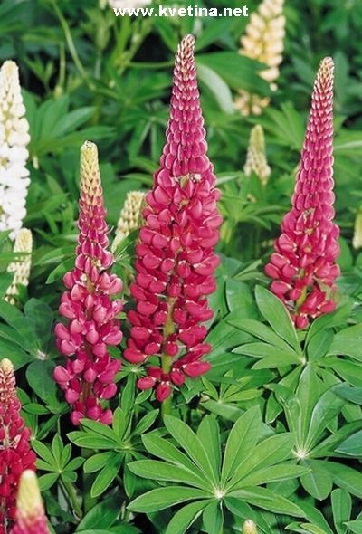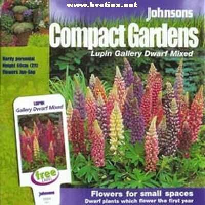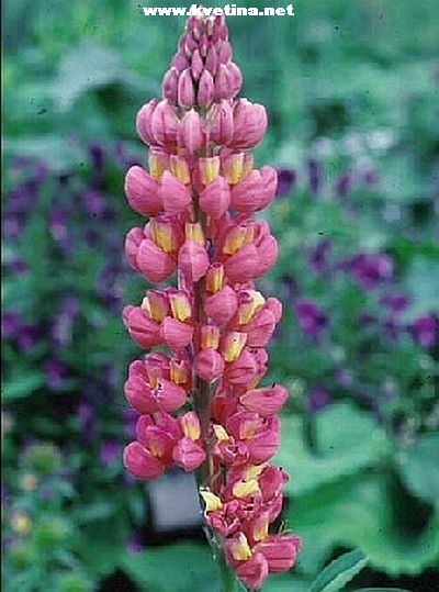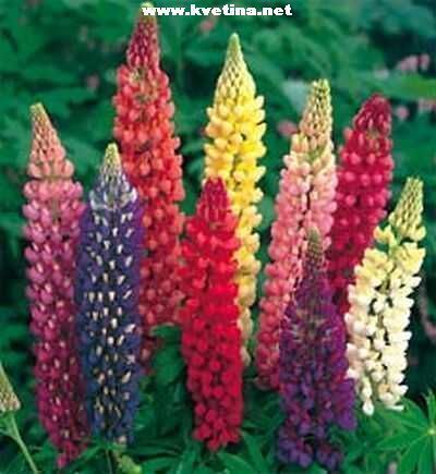 Vlčí bob - Lupinus polyphullus "Gallery mixed". Venkovní trvalka s dlouhými klasy, hrozny z motýlovytých květů. Krásné květy. Vhodné do nádob, záhonů, k vodě i jako solitéra. Výška 60cm. Kvete červen - srpen. Přidávat kompost a odkvetlá květenství odstraňovat, aby rostlina vykvetla i podruhé.