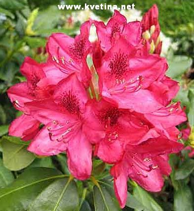 Rododendron, pěnišník - Rhododendron hybrid "Nova Zembla". Atraktivní dřevina s nádhernými květy, které každé jaro ohromý svou jasnou barvou, stavbou květu a velikostí. Jsou stálezelené.Kvete květen-červen. Mírně kyselá a živná půda.