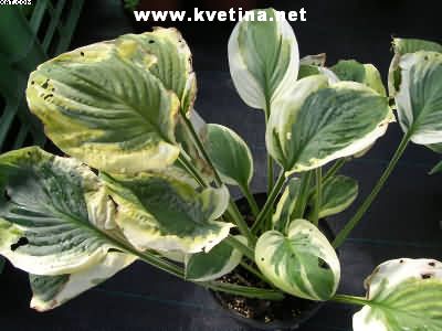 Funkie, bohyška - Hosta hybrida "Carnival". Listem ozdobná trvalka pro slunná až polostinná místa. Vhodné pro vlhčí půdy s přídavkem humusu. Pro skupinové výsadby i do nádob. Listy i květy se využívají pro aranžování i vazbu. List široce oválný, na středu tmavě zelený s širokým krémovým až žlutým lemem. Květy vyrůstají nad olistění a mají barvu světle levandulovou. Velmi pěkný kontrastní kultivar. Výška 45cm. Šířka až 1m. Kvete červenec - srpen.