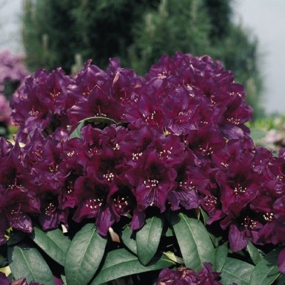Rhododendron hybrid "Polarnacht" - Rododendron, pěnišník. Polarnacht je další senzační, sytě vybarvenou odrůdou pěnišníku z dílny Hanse Hachmanna. Jeho květy jsou tmavě purpurové až fialové s černofialovým flíčkem a objevují se v druhé polovině května. Roste pomaleji a kompaktně do přibližně stejné výšky jako šířky.Pro bohatší kvetení a růst doporučujeme po odkvětu opatrně otrhat zvadlé květy tak, abyste neporušili nové výhony. Vysaďte jej do polostínu nebo stínu. Kořeny rostou mělce a nadále se rozrůstají pod povrchem země do stran, kde hledají živiny, takže jej nikdy nesázejte příliš hluboko. Půdu potřebují kyselou, bohatou na živiny, chladnou a neustále vlhkou. Dospělé kusy, mají-li neustále vlhkou zem, snáší i plné polední a odpolední slunce a dočasné zamokření. Ideální směs ke kořenům je rašelina smíchaná s lehkou, vápno-prostou zahradní zemí, zasypaná tlejícím listím či drcenou kůrou. Hnojit můžete speciálními hnojivy na rododendrony nebo vřesovištní rostliny. Plně mrazuvzdorný do -25°C, zřejmě i více.